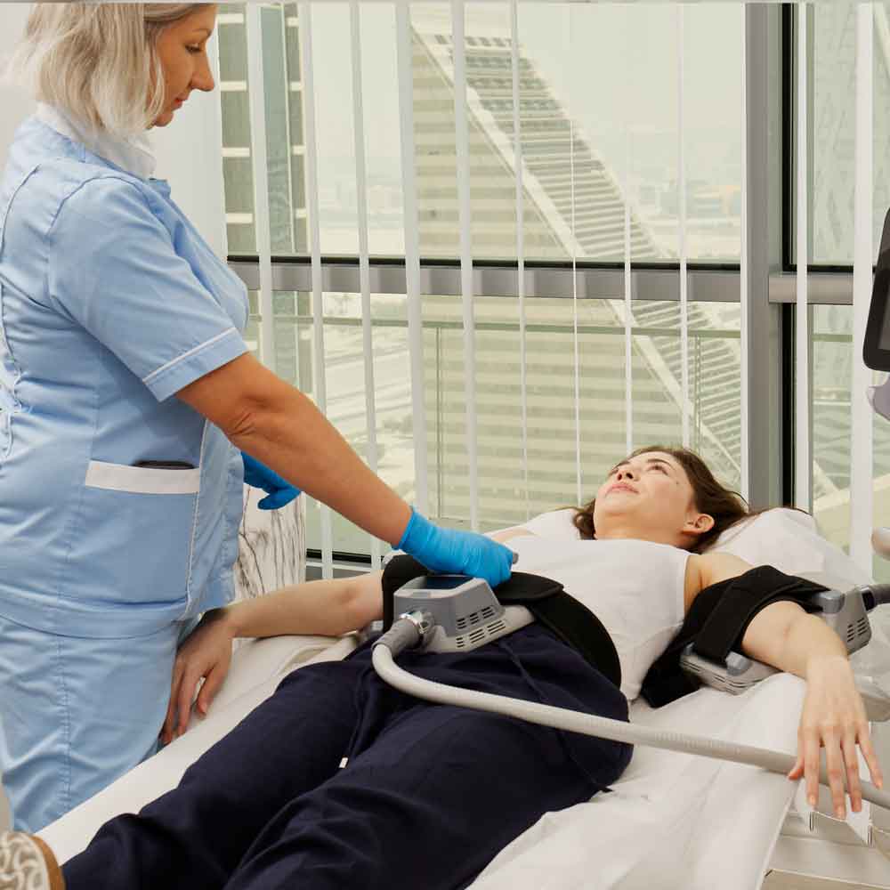 A professional and powerful body sculpting machines that can provide anti-cellulite, contouring and slimming effects. Suitable for fat burning, muscles building, skin tightening and post liposuction drainage. We work with innovative equipment such as Endospheresculpt, Cryotec, Vacuslim 48, Musculpting. Also, we provide Musculpting Chair Pelvic Floor therapy for those with urinary incontinence.